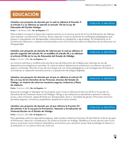 Page 35 - Primer Informe Legislativo 2024-2025 | LXVI Legislatura