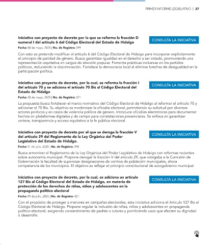 Page 37 - Primer Informe Legislativo 2024-2025 | LXVI Legislatura