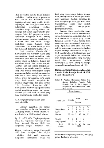 tingkat pendidikan orang tua dengan Status Anemia