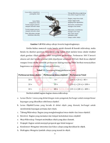 Tabel 1.1 Cara menghitung perbesaran total