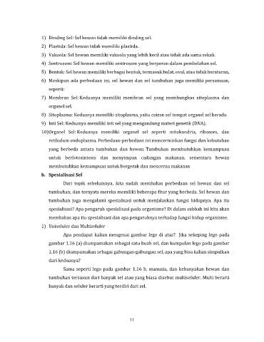 2) Plastida: Sel hewan tidak memiliki plastida.