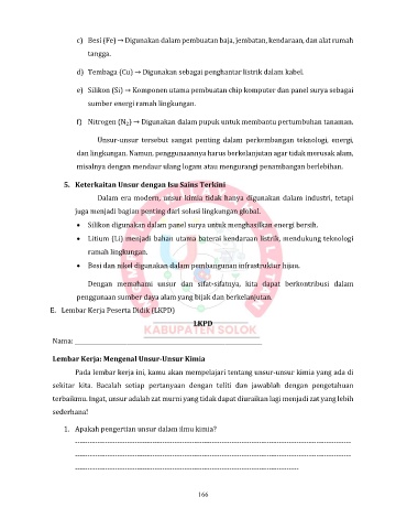 e) Silikon (Si) → Komponen utama pembuatan chip komputer dan panel surya sebagai