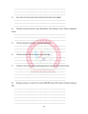 14. Tuliskan material-material yang dikeluarkan oleh gunung berapi ketika mengalami