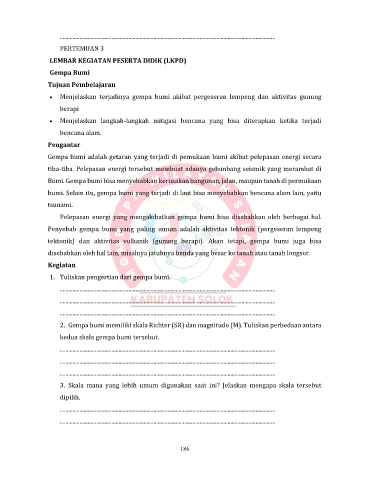Menjelaskan terjadinya gempa bumi akibat pergeseran lempeng dan aktivitas gunung