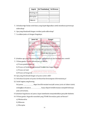 9. Pilihan ganda: Proses diferensiasi sel adalah: