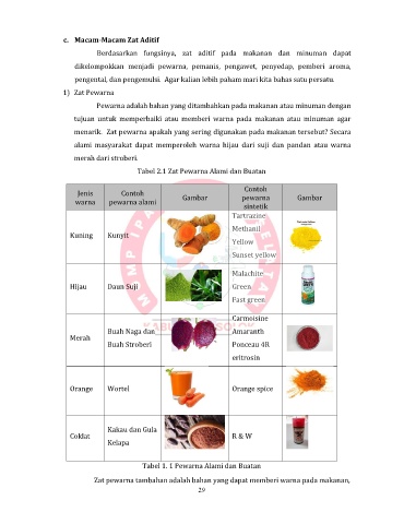 Tabel 2.1 Zat Pewarna Alami dan Buatan