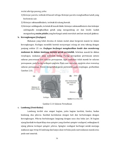 makanan ke dalam lambung melalui gerak peristaltik. Sebelum masuk ke dalam