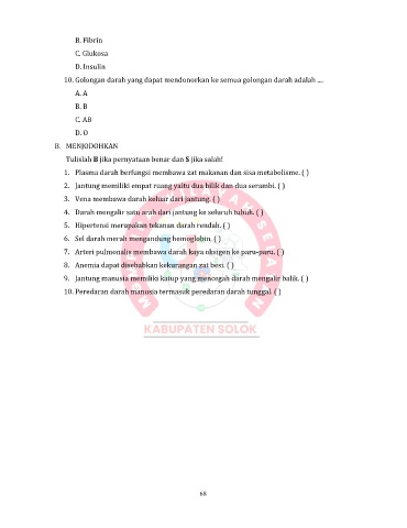 9. Jantung manusia memiliki katup yang mencegah darah mengalir balik. ( )