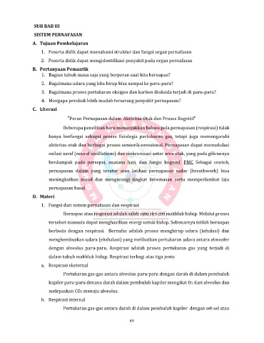 dengan alveolus paru-paru. Respirasi adalah proses pertukaran gas yang terjadi di