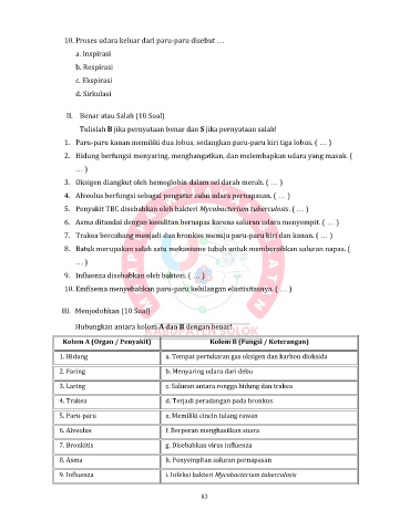 8. Batuk merupakan salah satu mekanisme tubuh untuk membersihkan saluran napas. (