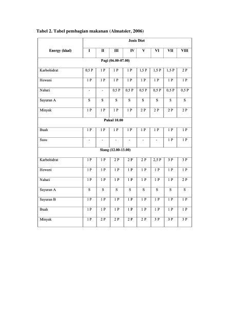 Tabel 2. Tabel pembagian makanan (Almatsier, 2006)