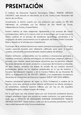 El Instituto de Educación Superior Tecnológico Público “MANUEL ARÉVALO