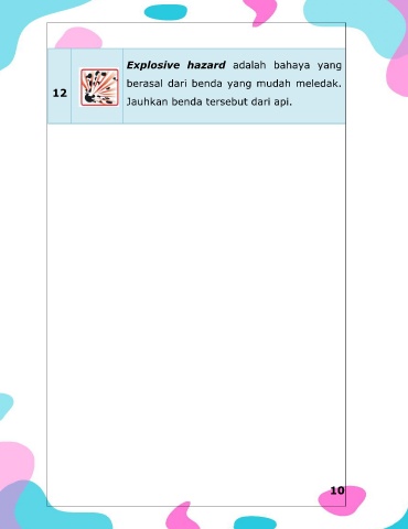 Explosive hazard adalah bahaya yang berasal dari benda yang mudah meledak. 12 Jauhkan benda tersebut dari api. 10