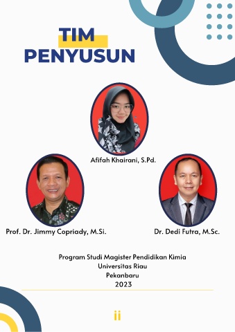 TIM PENYUSUN Afifah Khairani, S.Pd. Prof. Dr. Jimmy Copriady, M.Si. Dr. Dedi Futra, M.Sc. Program Studi Magister Pendidikan Kimia Universitas Riau Pekanbaru 2023 ii