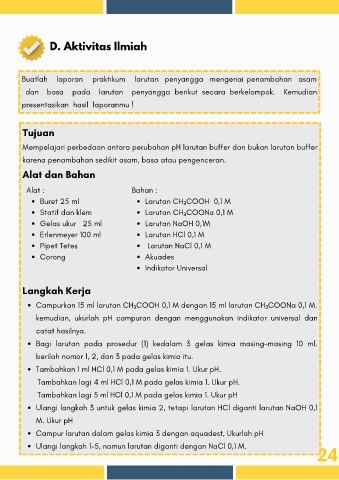 Tambahkan 1 ml HCl 0,1 M pada gelas kimia 1. Ukur pH.