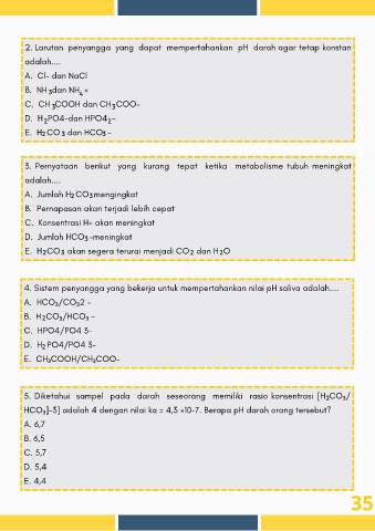 5. Diketahui sampel pada darah seseorang memiliki rasio konsentrasi [H CO₃/