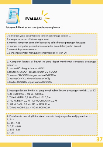 1.Pernyataan yang benar tentang larutan penyangga adalah ….