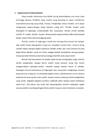 mandiri di rumah, sekolah maupun di masyarakat yang bisa kalian latih untuk menjadi