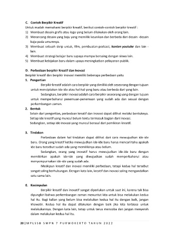 D. Perbedaan berpikir Kreatif dan Inovasi