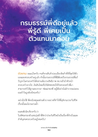 ในทัศนะข้องติัวแทนรุ่นพั่� พั่�คิิดว่าประกันชั่วิติยังเป็นเรองทจำาเป็นแล่ะ