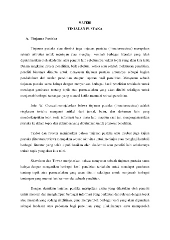 John W. Creswellmenejelaskan bahwa tinjauan pustaka (literaturereview) adalah