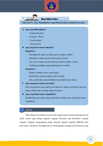 Aktivitas 9.1. Sisa Metabolisme yang Diekskresikan melalui Paru-paru.