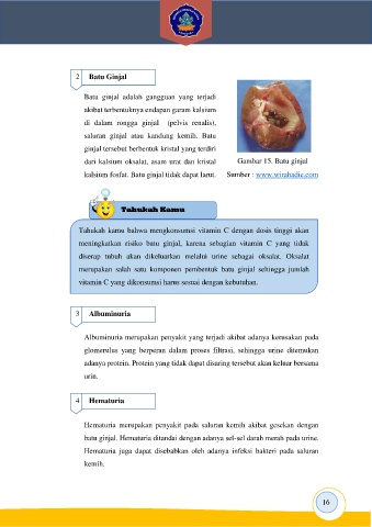 dari kalsium oksalat, asam urat dan kristal Gambar 15. Batu ginjal