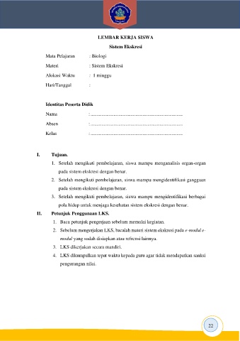 2. Sebelum mengerjakan LKS, bacalah materi sistem ekskresi pada e-modul e-