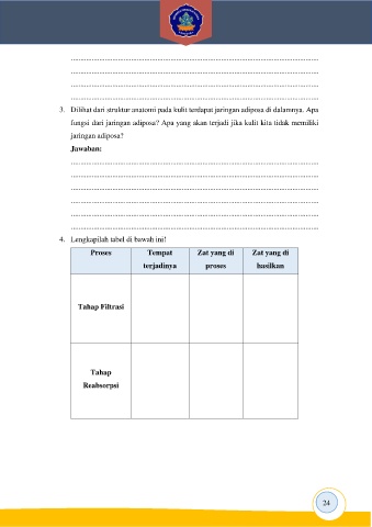 3. Dilihat dari struktur anatomi pada kulit terdapat jaringan adiposa di dalamnya. Apa