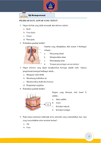 3. Organ ekskresi yang dapat menghasilkan keringat adalah kulit. Adanya