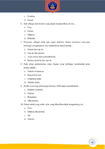 10. Dalam tubuh yang sehat, urine yang dihasilkan tidak mengandung zat...