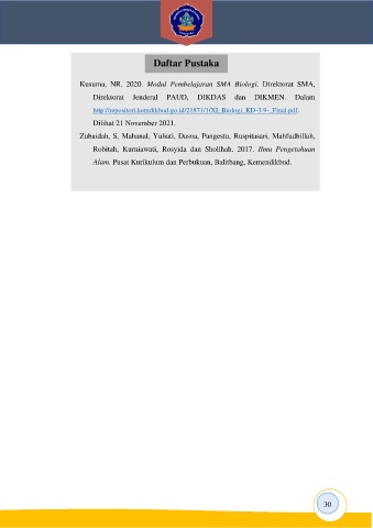 Kusuma, NR. 2020. Modul Pembelajaran SMA Biologi. Direktorat SMA,
