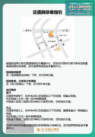建議您搭乘大眾交通運輸前往本會議中心,若您自行開車可將汽車停至桃園