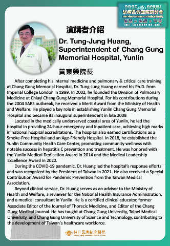at Chang Gung Memorial Hospital, Dr. Tung-Jung Huang earned his Ph.D. from