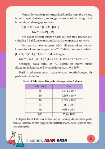 didapatkan ketetapan Kw adalah sebesar 1,0 x 10 -14