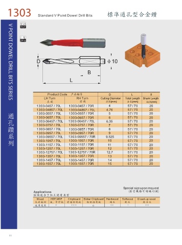 1303 Standard V Point Dowel Drill Bits 標準通孔型合金鑽