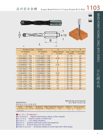 亞洲型合金鑽 Super Brad Point 4-Flutes Dowel Drill Bits 1103