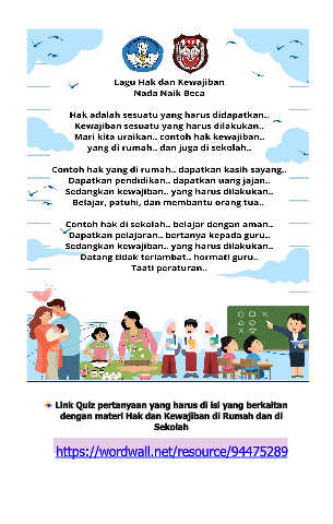 Link Quiz pertanyaan yang harus di isi yang berkaitan dengan materi Hak dan Kewajiban di Rumah dan di Sekolah https://wordwall.net/resource/94475289