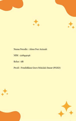 Nama Penulis : Alma Nur Azizzah NIM : 22844046 Kelas : 6B Prodi : Pendidikan Guru Sekolah Dasar (PGSD)