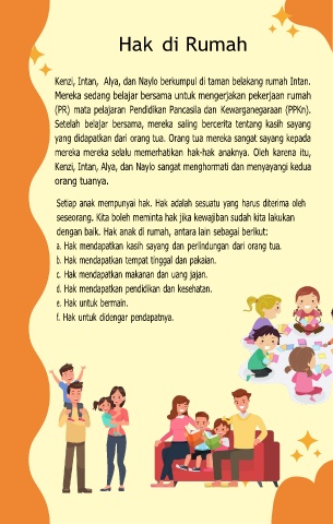 dengan baik. Hak anak di rumah, antara lain sebagai berikut: