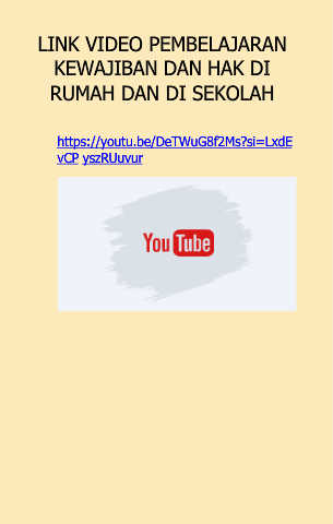 LINK VIDEO PEMBELAJARAN KEWAJIBAN DAN HAK DI RUMAH DAN DI SEKOLAH https://youtu.be/DeTWuG8f2Ms?si=LxdE vCP yszRUuvur
