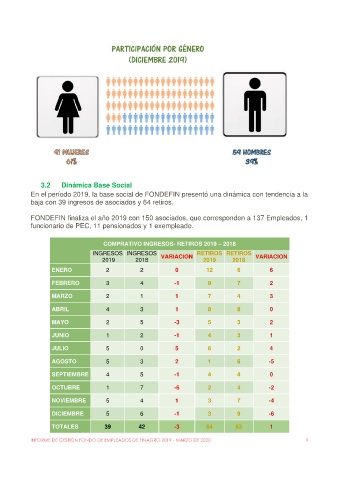 En el período 2019, la base social de FONDEFIN presentó una dinámica con tendencia a la