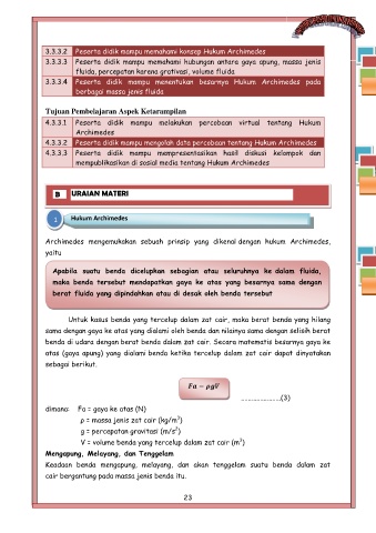 3.3.3.4 Peserta didik mampu menentukan besarnya Hukum Archimedes pada
