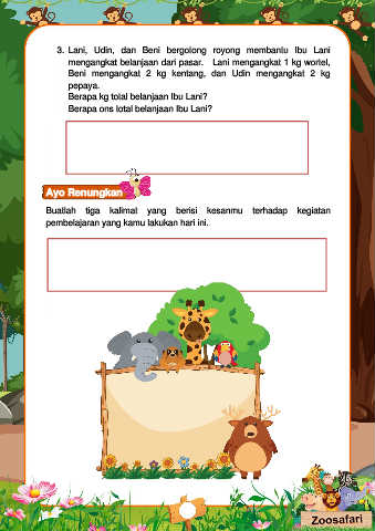 mengangkat belanjaan dari pasar. Lani mengangkat 1 kg wortel,