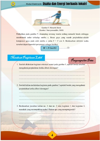 Perhatikan pada gambar 5. disamping seorang wanita sedang menarik benda sehingga