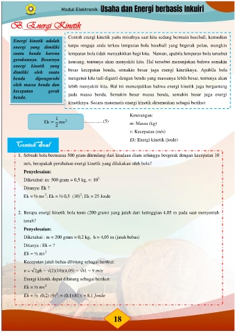dimiliki oleh suatu besar kecepatan benda, semakin besar juga energi kinetiknya. Apabila bola
