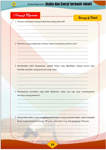 1. Jelaskan perbedaan energi kinetik dan energi potensial!