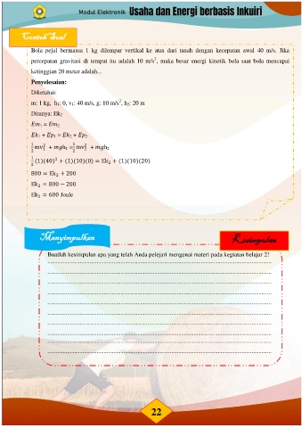 percepatan gravitasi di tempat itu adalah 10 m/s , maka besar energi kinetik bola saat bola mencapai