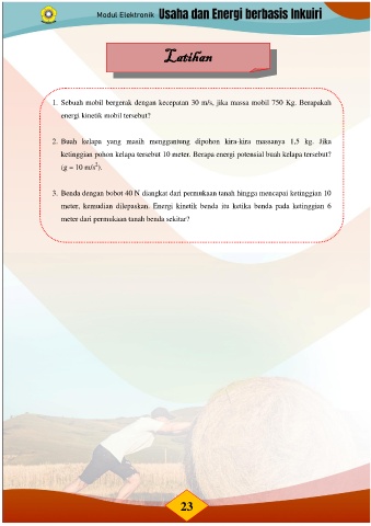 3. Benda dengan bobot 40 N diangkat dari permukaan tanah hingga mencapai ketinggian 10