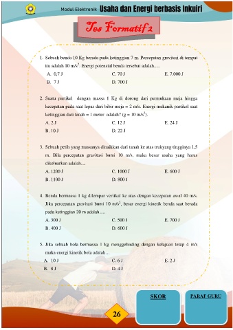 1. Sebuah benda 10 Kg berada pada ketinggian 7 m. Percepatan gravitasi di tempat
